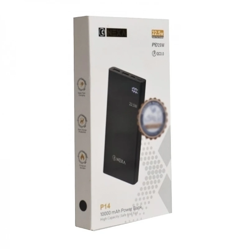 مشخصات فنی:ظرفیت پاور بانک ۱۰۰۰۰ میلی آمپر ساعت پشتیبانی از فن آوری PD و QC ۳.۰ قدرت خروجی ۲۲.۵ وات